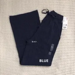 【美品】UNIQLO ウォッシャブルニットケーブルパンツ/丈長め ブルーXL