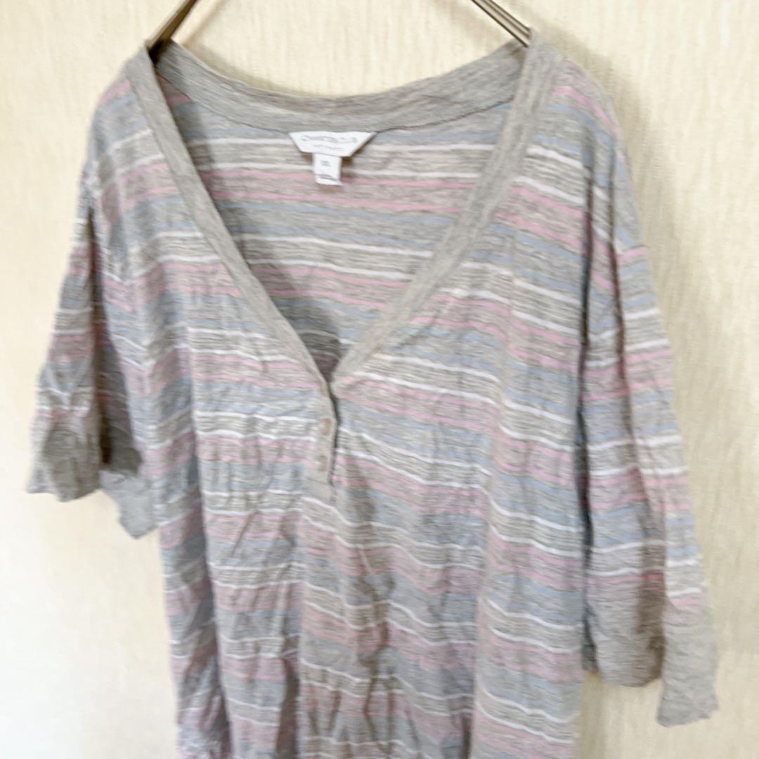 Charter Club 【3L】ストライプ Vネック Tシャツ ボタン