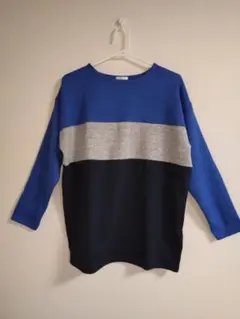 シネマクラブ (M) 長袖ニット プルオーバー ストライプ柄 体型カバー