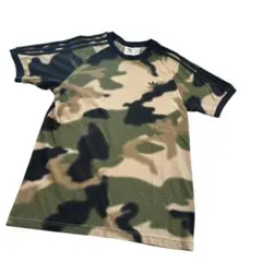 ブラックと迷彩のデザインが特徴的なadidasのTシャツ。