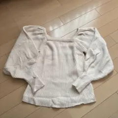 GRL バルーンスリーブ ニット フロントギャザー ハートネック ホワイト M