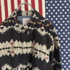 アメリカンイーグル ボタンダウンシャツ チェック柄 刺繍 胸ポケット 羽織り L