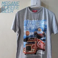 - デザイン: グレーの長袖Tシャツ、コカ・コーラのロゴとグラスのプリント