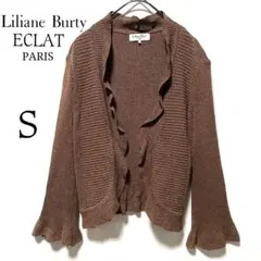 Leilian Burty ECLAT ピンクブラウン抽象パターン カーディガン