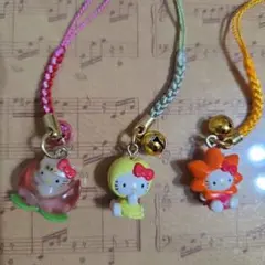 和服風の衣装を着たハローキティのぬいぐるみタグ付き。