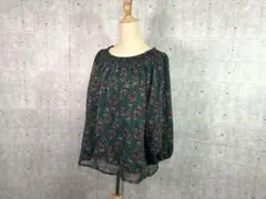 多色のドット柄と前身頃にフリルデザインの長袖ブラウス。裏地なし。背中にボタン。日本製。