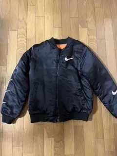 NikeのブラックMA-1フライトジャケット、左袖にロゴ入りポケット付き。