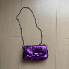 ZARAの緑色のファー素材を使用したショルダーバッグで、ベッコウ色のハンドルが特徴です。