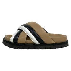 カジュアルな印象になりがちなサンダルも、スエード素材や上品なブラウンxブラックの配色で非常にモード感の強いアイテムです。