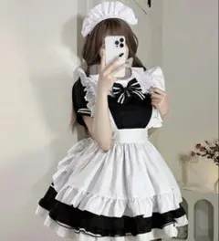 ハート型の切り込みとフリルが特徴の可愛いメイド服。