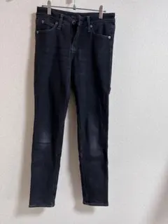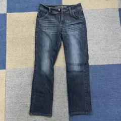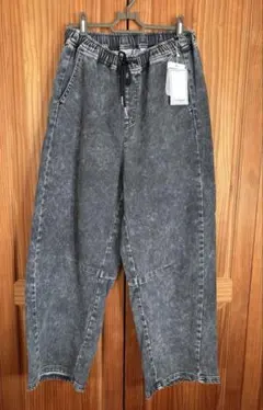 しまむら ハッピーバッグ ブラック ストレートデニムパンツ 裏起毛 ワイドパンツ