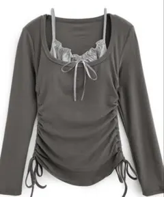 GRL ドット柄フロントリボントップス[ks161]