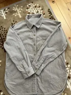 GUのピンクストライプボタンダウンシャツ、長袖でバックプリーツデザイン。