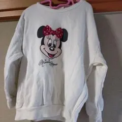 ミニーマウスプリントのベージュトレーナー、110cmサイズ。