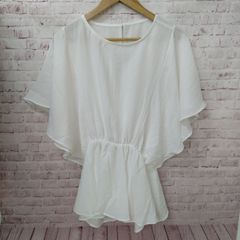 フリルとリボンが特徴のホワイトシャツ、サイズS。