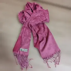 カシミヤ100% パシュミナ 大判ストール ペイズリー柄 ショールピンクフリンジ