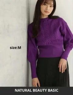 ナチュラルビューティー◆フロントデザインニット(M)茶 ラップ風 大人女子