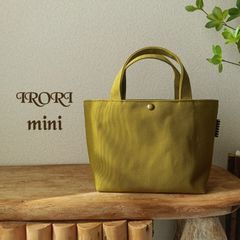 生成と深緑2色切替えトートバッグ、内部にポケットあり。