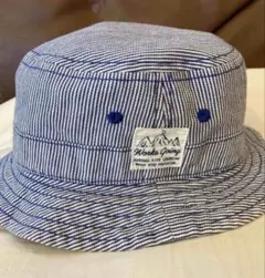 調節可能なストラップ付きの青いバケットハット、メッシュライニングで通気性抜群。