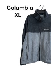フード付きのグレーのColumbiaフリースジャケットで、フロントにポケットが便利です。