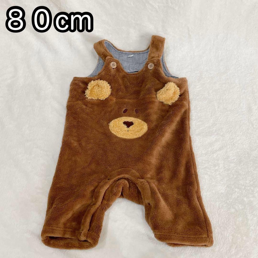 ◯くまロンパース 80cm ふわもこ 冬用 くまフェイス ブラウン