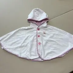 MIKIHOUSEのカラフルドット柄ポンチョ、フード付きで暖かい。