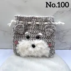 ハンドメイド 巾着袋 濃いグレーのシュナウザー かぎ編み no108