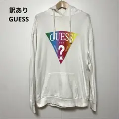 フード付きのネイビーパーカー、GUESSのグラフィックプリントデザイン。