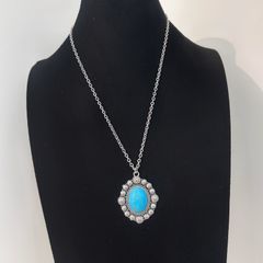 ブルーの大きなビーズと木製パーツを使用したボヘミアンスタイルのネックレス
