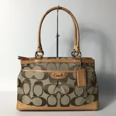 COACHトートバック シグネチャー 茶ブラウン 自立型 きれいめシルエット
