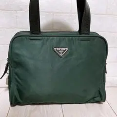 プラダ PRADA 巾着バッグ ミニポーチ 三角ロゴ 白タグ カーキ 手提げ