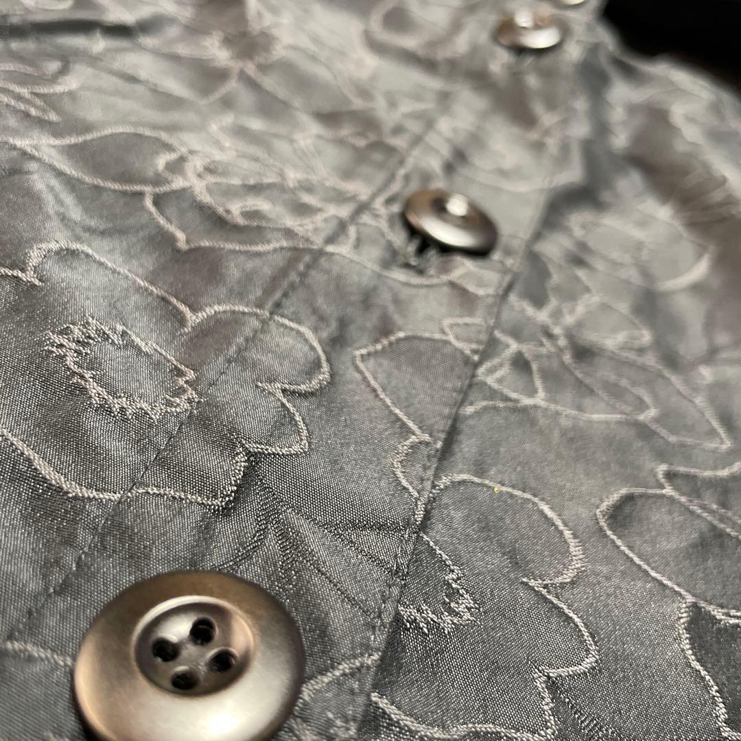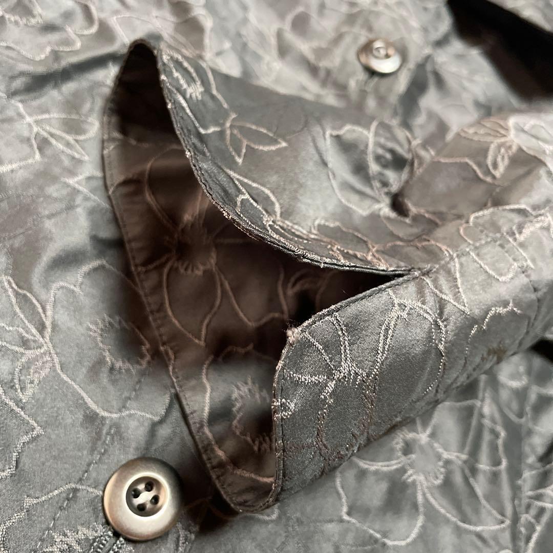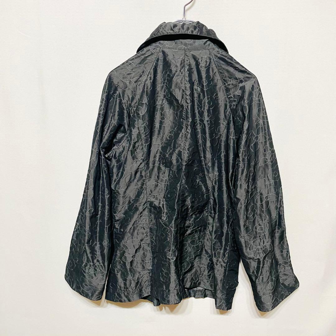 ナイガイ 花柄刺繍 ジャケット ブラック 長袖 スリット 前ボタン ポケット L
