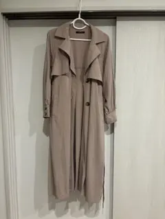 ウエスト調整可能なブラックロングコート、ジップアップデザインです。