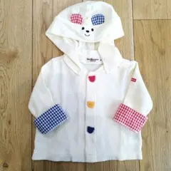 ホットビスケッツ ウサギ刺繍赤カーディガン、白フリルカットソー