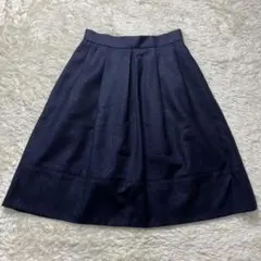 23区 プリーツ フレアスカート ストライプ ネイビー M 薄手