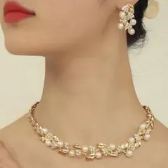 一度だけ使用した、上品なネックレスとピアスのセットです。