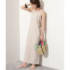 スローブイエナ ワンピース フレンチリネン100 スキッパー ブラウン