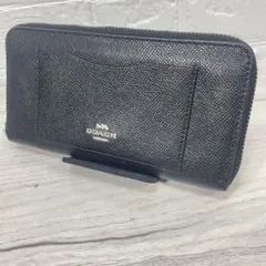 コーチ COACH ラウンドジップ 長財布 ブラック レザー 本革