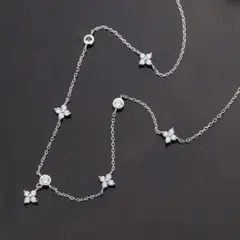 フラワーモチーフのジルコニアパヴェダイヤモンドネックレス。