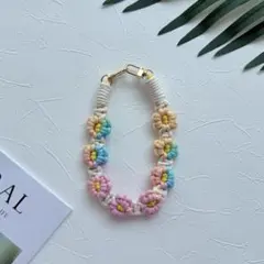 メタリックカラーを使ったマクラメ編みのハンドストラップ /236 ベージュ