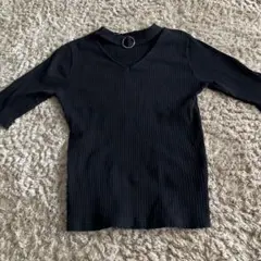one way ネイビー/ホワイト ストライプ 七分袖ニット トップス