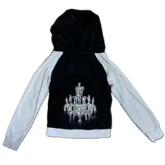 フード付きの黒と緑のスウェットパーカー、リフレクター付きストライプデザイン。