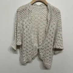アイボリーのストライプデザインの半袖ボレロ