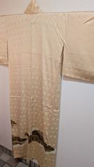 121416 宅 縮緬 江戸小紋 色無地 一つ紋 織物 訪問着 一重 絹 秋冬春