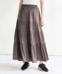 デニム フレア スカート ロング ベージュ ウエストゴム 後ろゴム