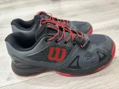 息子がオムニとクレーコートで一年弱使っていました。サイズアウトの為出品いたします。サイズ表記のある箇所に名前を書いてありましたのでマジックで消してあります。