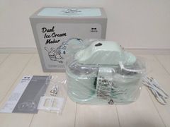 デュアルアイスクリーム製造が可能なアイボリー色のアイスクリームメーカー。