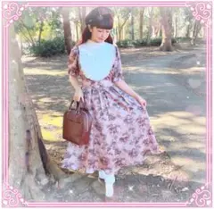 フラワープリントとウエストリボンが特徴の長袖マキシワンピース。3Lサイズ