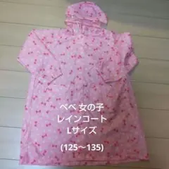 赤と白のチェック柄のフード付きレインコート、サイズ130。