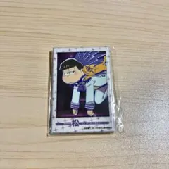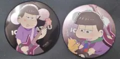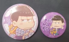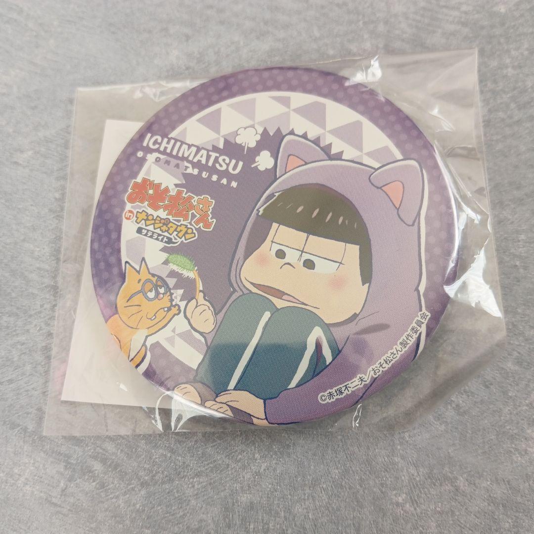 一松の猫耳フードデザインの缶バッジ、紫色で可愛いキャラクターアイテム。